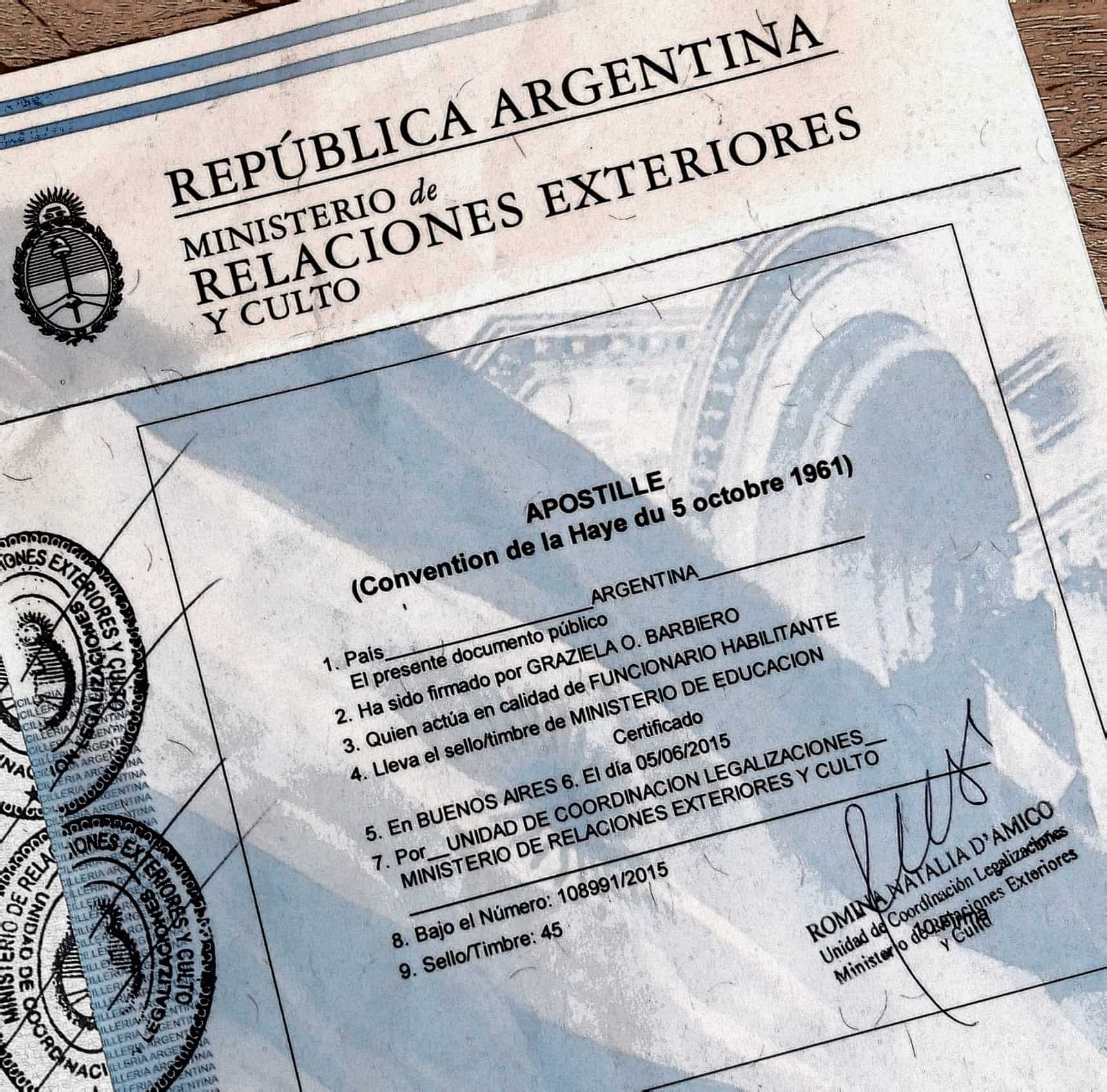 Esto significa que un documento argentino apostillado será válido en todos los países que forman parte del convenio.